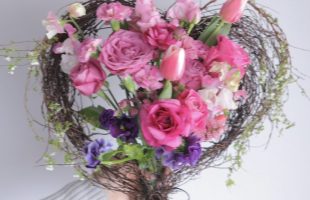 季節のブーケレッスン 「ハートのブーケ」人気です♪ 今月のレッスンは、バ…